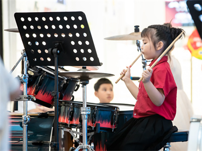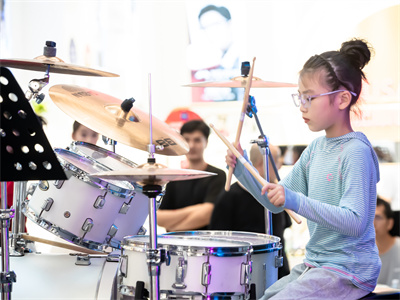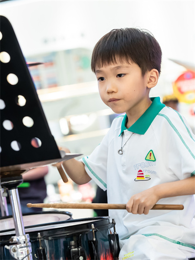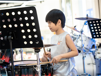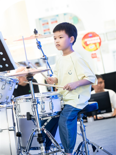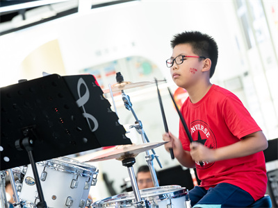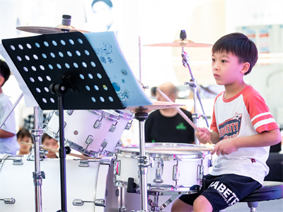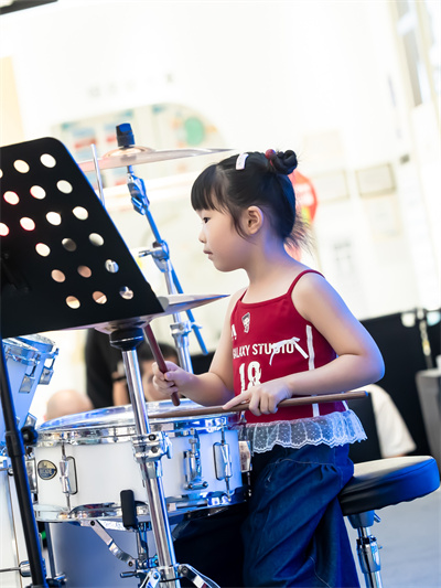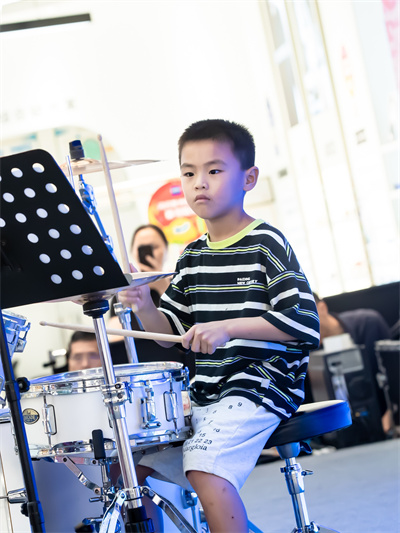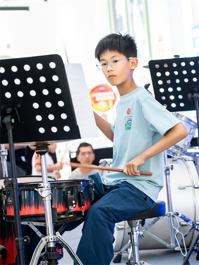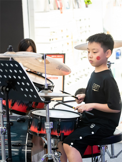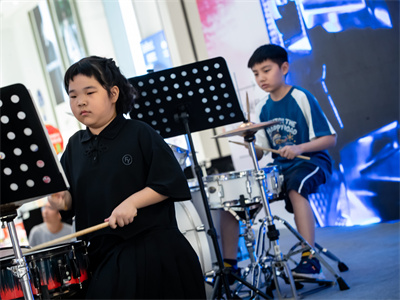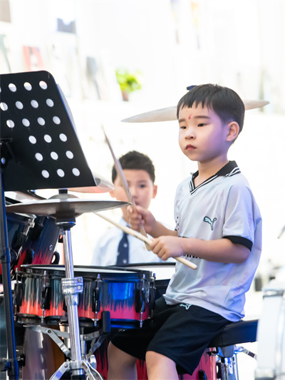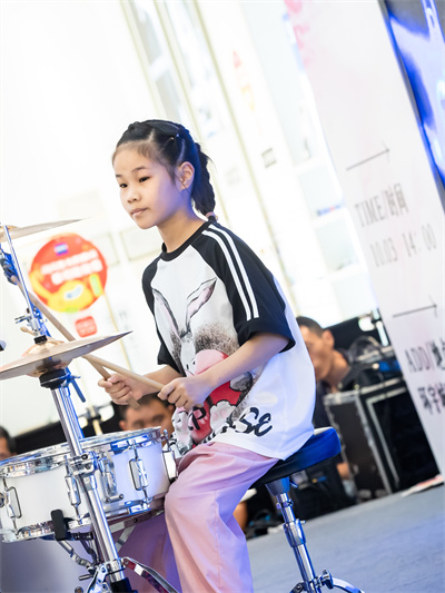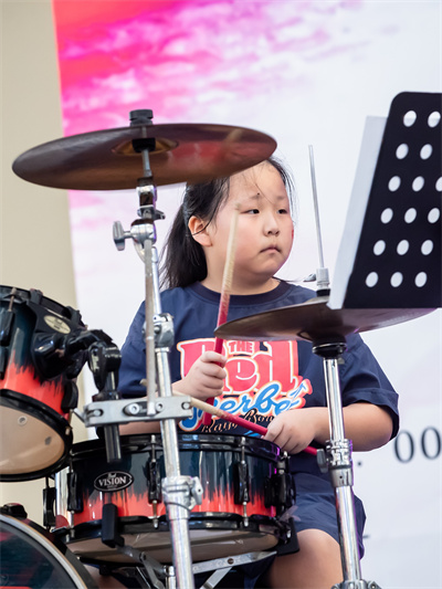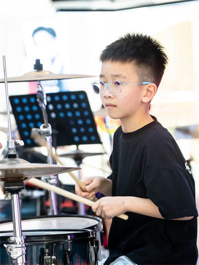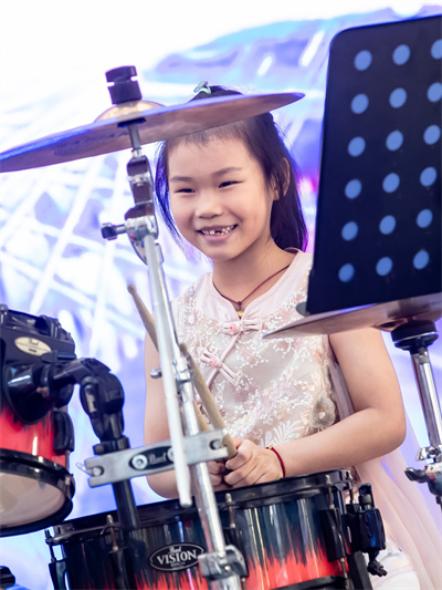 有的孩子一开始会紧张到忘记动作,但听到台下的掌声与欢呼,便立刻找回状态,越敲越投入;有的孩子在独奏段落里,加入了自己偷偷练了无数遍的小设计,眼神里满是“看我的”的自信。他们或许还有些稚嫩,却用最真诚的表达,让全场感受到架子鼓的热血与快乐。